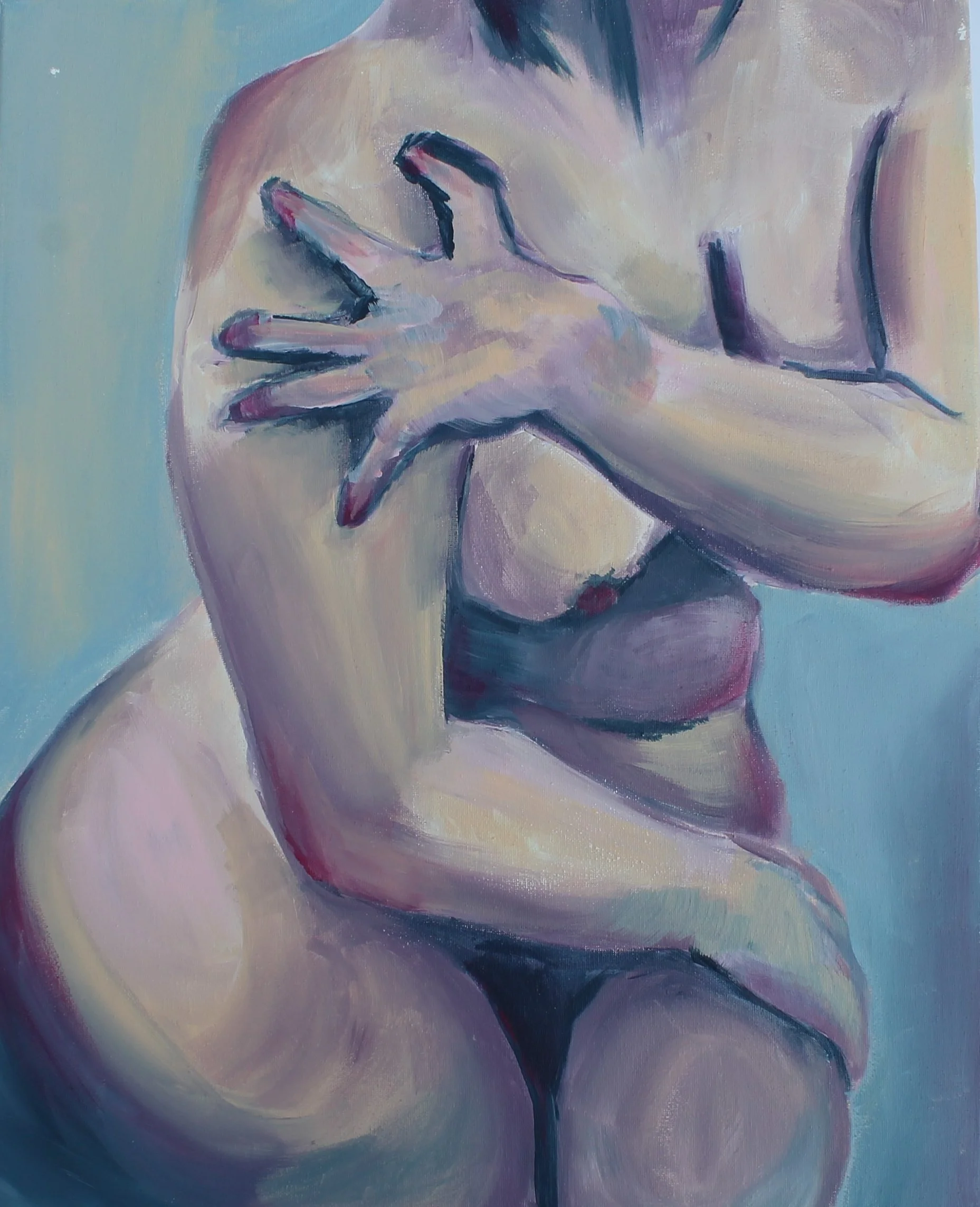 This collection of work is a series of paintings I created in my time at college over the course of 3 years. They reflect on the objectification of the feminine form, self-image, and how the body acts as a vessel for the human experience.